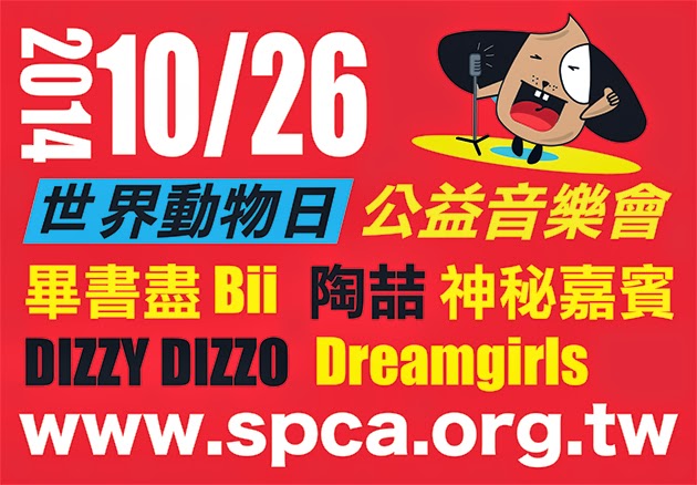今年台灣SPCA將在臺北華山Legacy舉行一場公益音樂會,並邀請歌手陶喆,Dreamgirls,畢書盡,Dizzy Dizzo 蔡詩芸,方炯鑌擔任表演嘉賓。