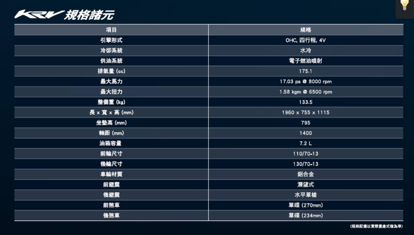 KYMCO KRV規格表
