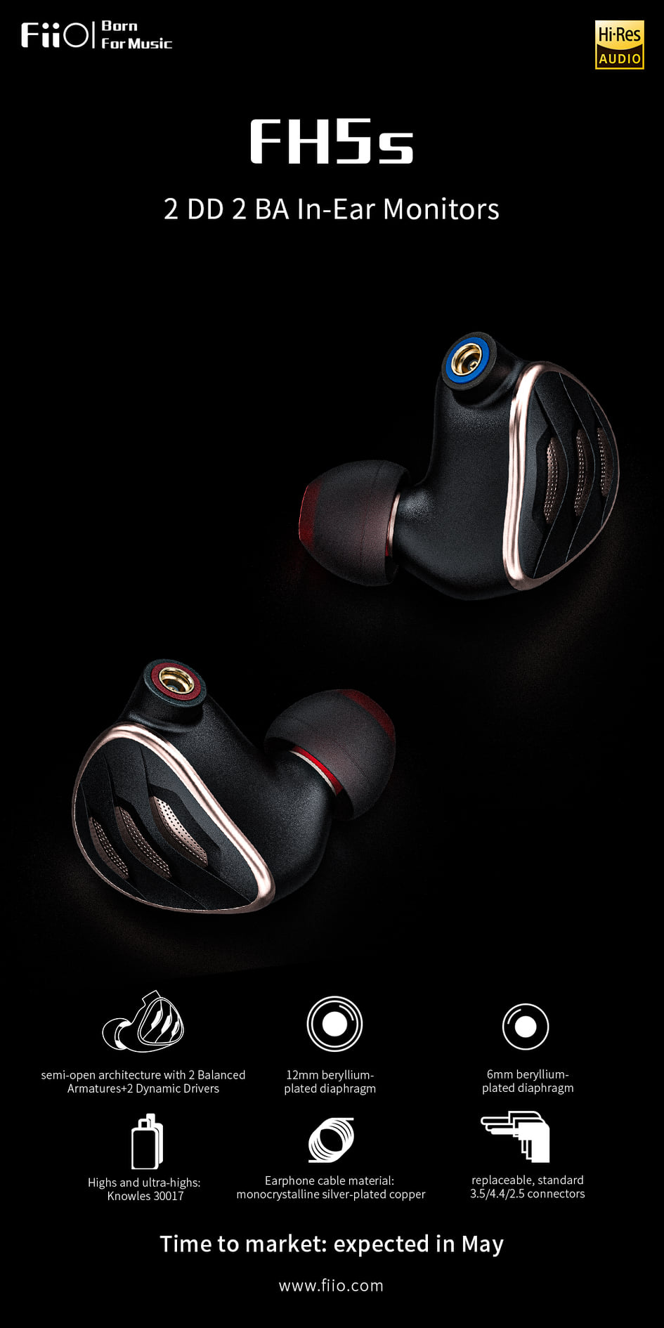 Fiio FH5s 搶先看 Fiio FH5s 多單體耳機搶先看,採用兩圈兩鐵混合四單體,兩圈用於中低音,兩鐵用於高音與超高音,低音:1.5T 外磁場的12mm 鍍鈹膜片,中音:6mm鈹鍍膜隔膜,高音與超高音:Knowles 30017,預計2021年4月發表。 FH5s (兩圈兩鐵)是 FH5(一圈三鐵)的升級版,售價應該會與FH5差不多,落在八九千。 參考資料: https://twitter.com/FiiO_official